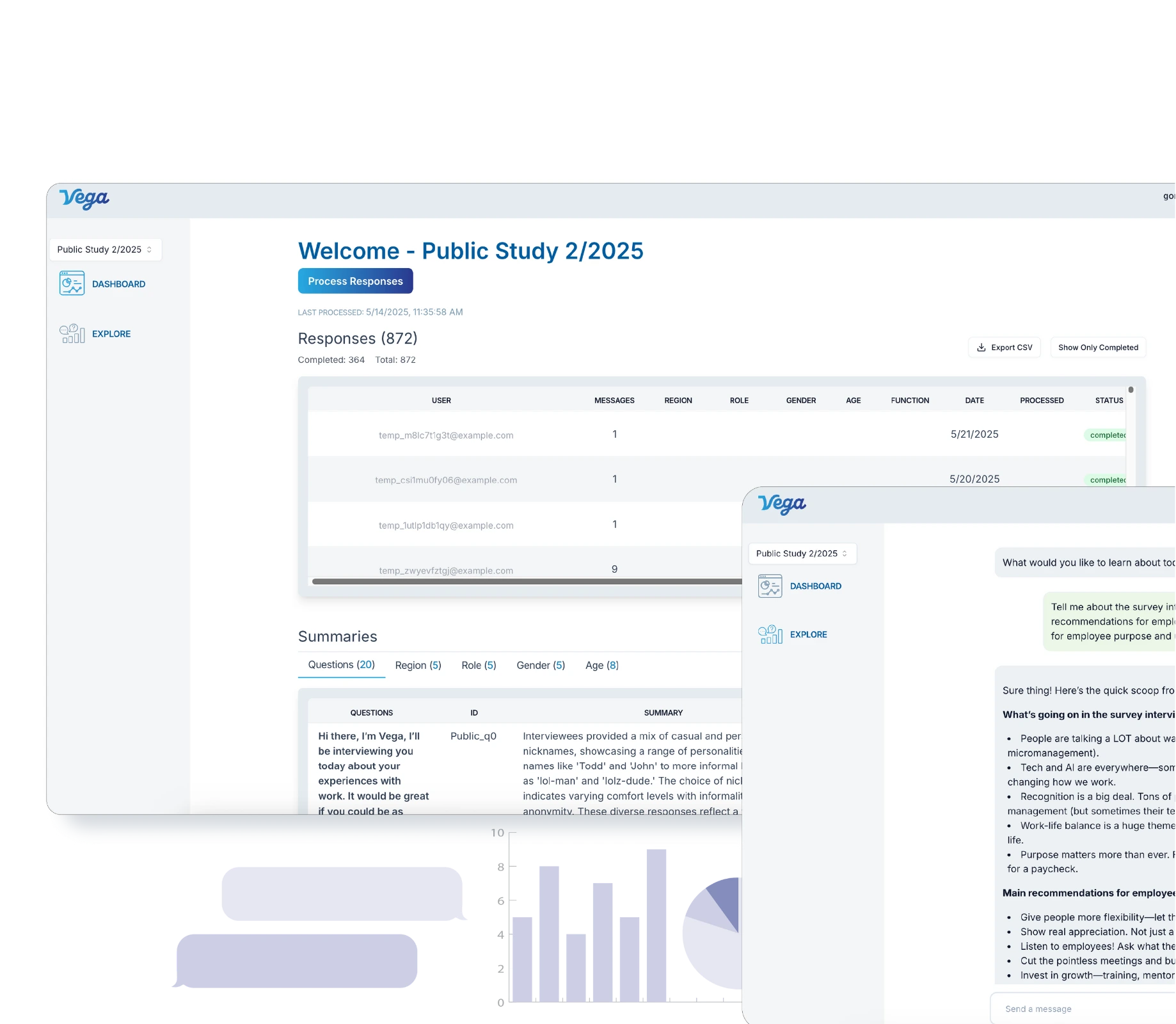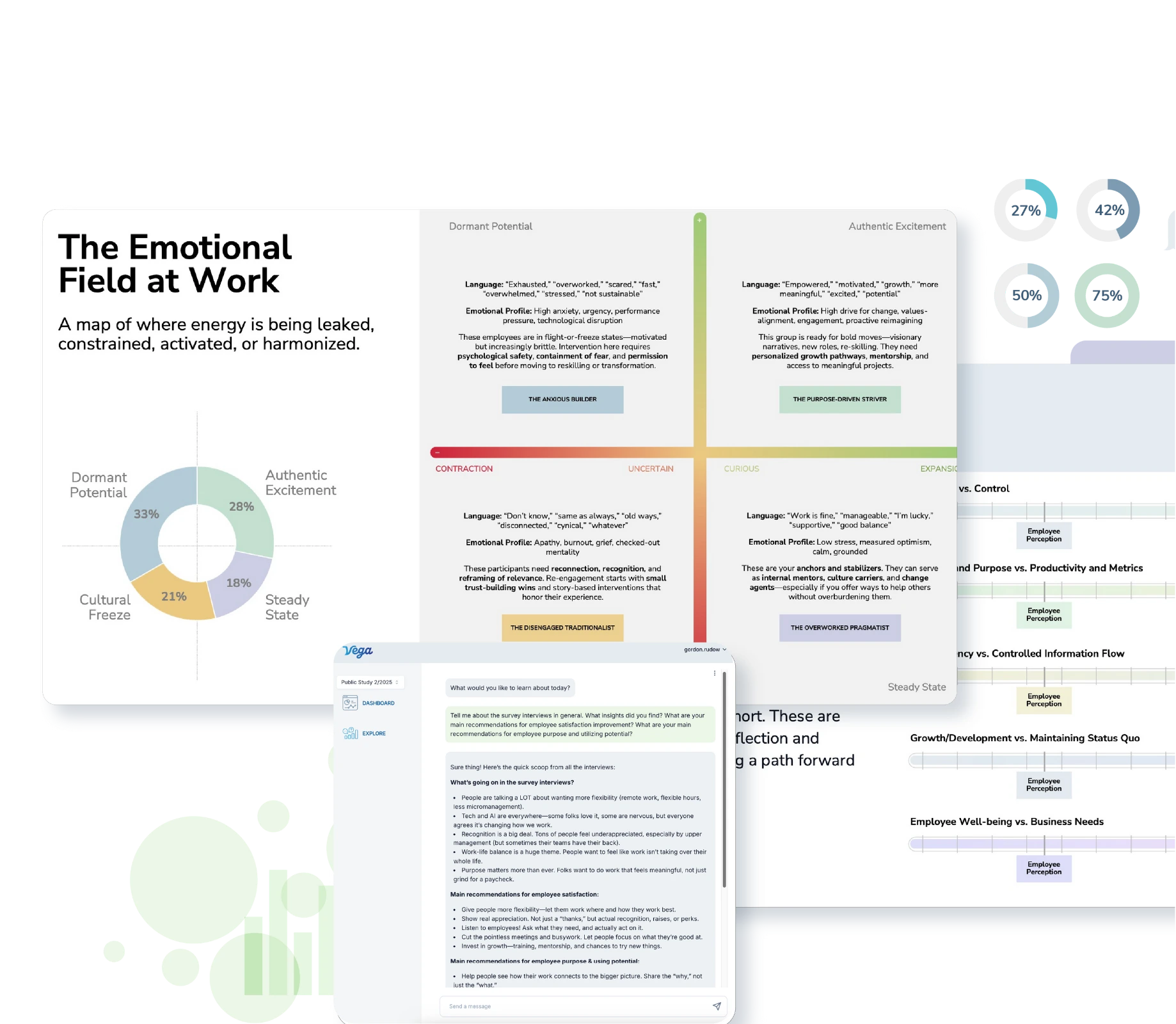 Vega breaks the mold of traditional research by transforming natural, conversational interviews into clear insight, illuminating the current state of beliefs, emotions, and behaviors. With that clarity, you can make your investment decisions with confidence that you’re addressing the issues that matter.